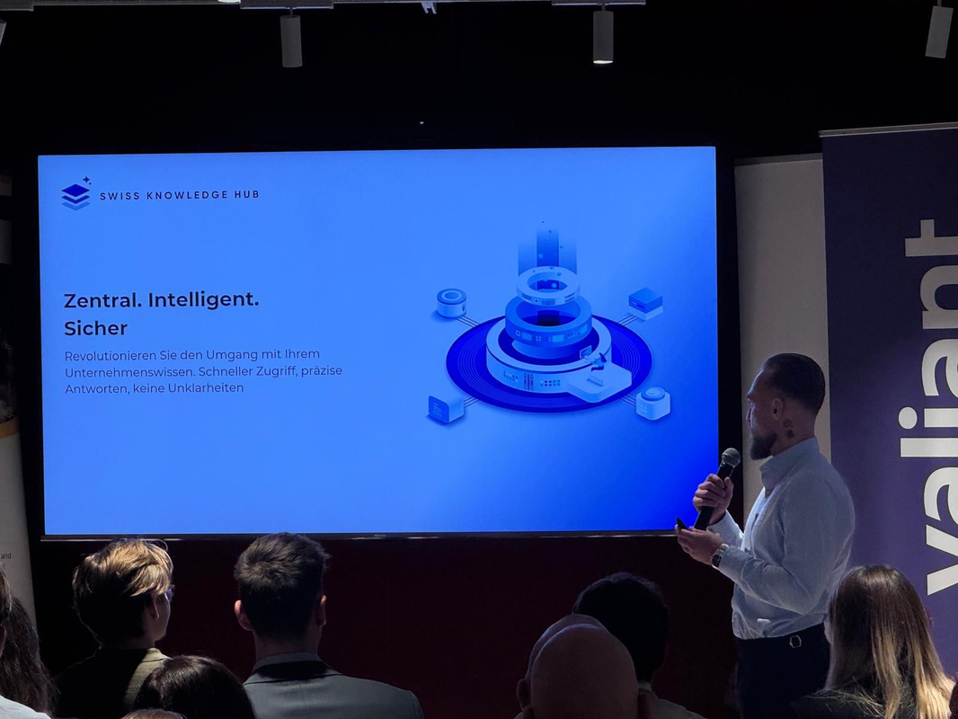 Ein weiteres Highlight war die Live-Demo des Swiss Knowledge Hub, die zeigte, wie Unternehmen ihr Wissen mit KI noch besser nutzen und Prozesse effizienter gestalten können.